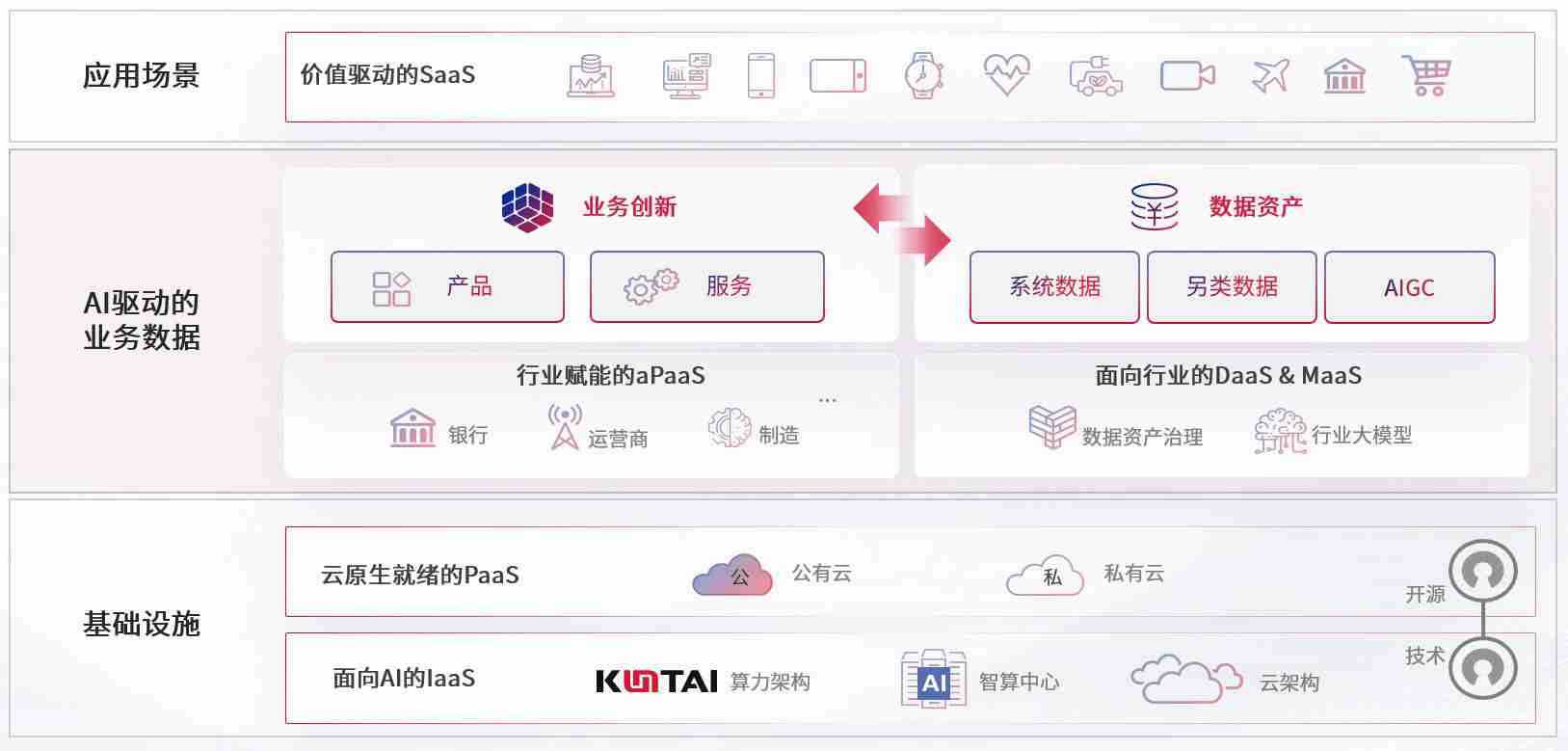 数字时代,,围绕企业数字化转型的关键要素,,,,usdt游戏网数码开创性的提出数云融合战略和技术体系框架,,着力在云原生、、、数字原生、、、、AI原生和信创产业上架构产品和服务能力,,,为处在不同数字化转型阶段的快消零售、、、、汽车、、、、金融、、、、医疗、、、、政企、、、、教育、、运营商等行业客户提供泛在的敏捷IT能力和融合的数据驱动能力,,,,构建跨界融合创新的数字业务场景和新业务模式,,,,助力企业级客户建立面向未来的核心能力和竞争优势,,,全面推动社会的数字化、、、、智能化转型升级。。。。